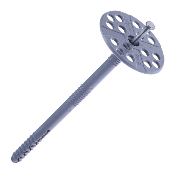 Дюбель с металлическим гвоздем Daxmer IZM предназначен для крепления к стенам различных теплоизоляционных материалов – плит из минеральной и каменной ваты, пенополистирола, пенопласта и других. Такой вид крепежа подходит для оснований из ячеистого бетона, монолитного бетона и кирпича. Устанавливается в предварительно высверленное отверстие при помощи молотка. Применяется для монтажа теплоизоляции в вентилируемых фасадах. Монтаж необходимых оснований при помощи крепежа осуществляется посредством распорного стержня, забитого в дюбель. Дюбель изготавливается из полимерных материалов, вследствие чего имеет долгий срок эффективной службы и не подвержен коррозии. Материал дюбеля – ударопрочный полипропилен, материал гвоздя – металл (IZM). Сохраняет свои свойства при низких температурах вплоть до -30°C. Продукция прошла сертификацию и им...