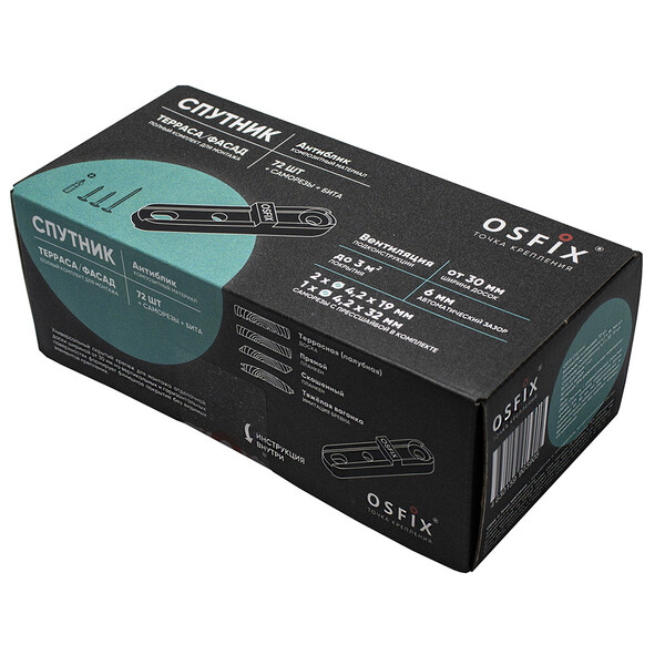 Предназначен для монтажа террасной и фасадной доски. Цвет и текстура поверхности обеспечивают эффект антиблика. Композитный материал крепежа стоек к химическому и коррозионному воздействию, выцветанию, не гигроскопичен. Двутавровый профиль крепежа обеспечивает дополнительную вентиляцию подконструкции. Автоматически формирует зазор 6 мм. Подходит для досок из натуральной древесины и полнотелых композитных материалов толщиной от 18 до 40 мм и шириной от 35 мм. Набор включает в себя полный комплект для установки террасной доски на площади до 5 м² (в зависимости от ширины доски и расстояния между лагами).