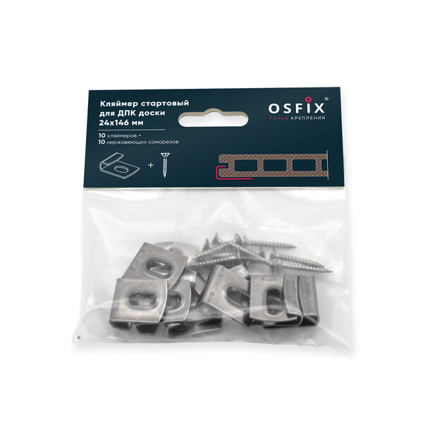 Клипса монтажная нержавеющая используется для монтажа террасной доски ДПК 24х146 мм. Стартовый крепеж значительно упрощает монтаж прилегающих к стене досок, создание углового соединения, монтаж доски на лестницах и в прочих местах, где нет возможности подобраться к месту крепления после укладки доски (овальное отверстие в теле крепежа позволяет просто задвинуть его в сформированный в доске паз). Крепеж выполнен из нержавеющей стали, что позволяет эксплуатировать готовое покрытие в условиях агрессивного морского климата.
