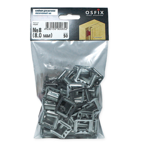 Увеличенный кляймер для вагонки – скрытое крепление, предназначенное для монтажа вагонки, евровагонки, вагонки штиль и софтлайн, а так же имитатора бревна. Оцинкованное покрытие обеспечивает коррозионную стойкость крепления. Два ребра жесткости на теле крепежа и два ребра жесткости в основании лапки обеспечивают жесткость крепления. Кляймер предназначен для монтажа на гвозди 1,6х20 мм (в комплекте) или на скобы, при помощи строительного степлера. Количество упаковок в транспортном коробе – 45 упак.