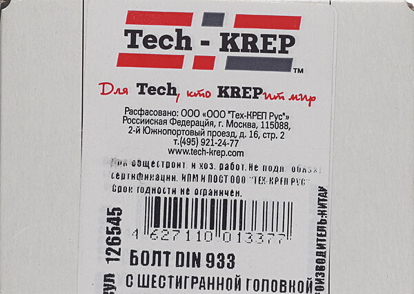 Тип товара Болт