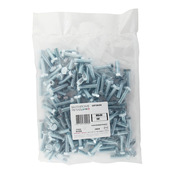 Болт оцинкованный M8x30 мм DIN 933 (2 кг)