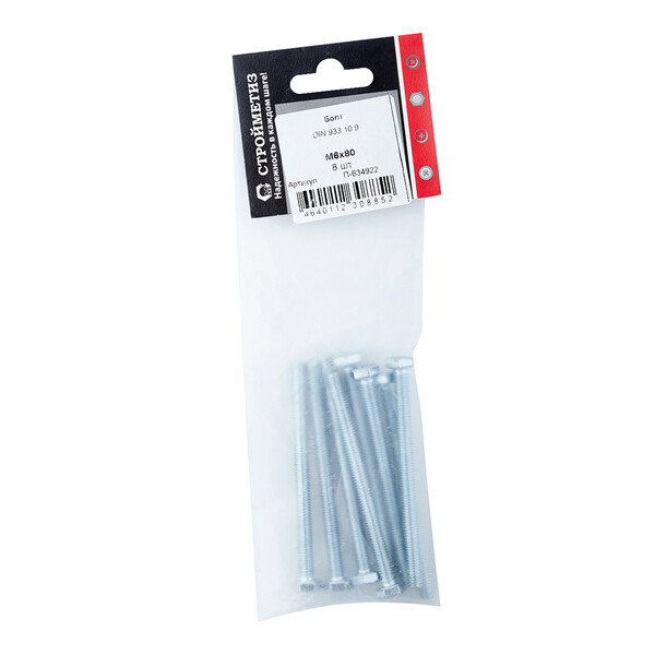 Болт оцинкованный M6x80 мм DIN 933 10,9 (8 шт.)