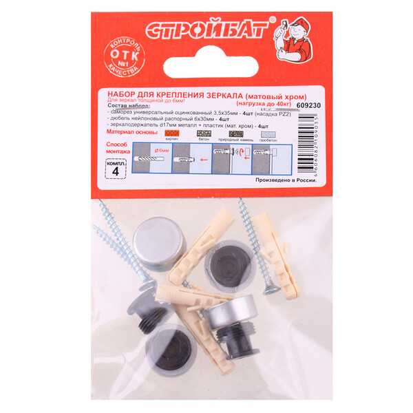 Предназначен для крепления зеркала, цвета хром. Нагрузка до 40 кг.