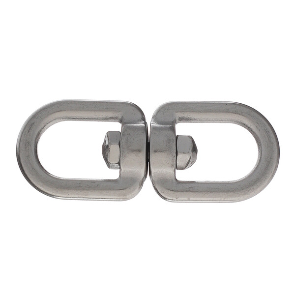 Позволяет двум присоединенным к нему такелажным элементам вращаться вокруг своей оси, что предотвращает скручивание цепей, тросов, канатов и снимает с них лишние нагрузки. Вертлюг петля-петля не имеет разборных частей, поэтому для соединения элементов необходим карабин или соединительное звено.