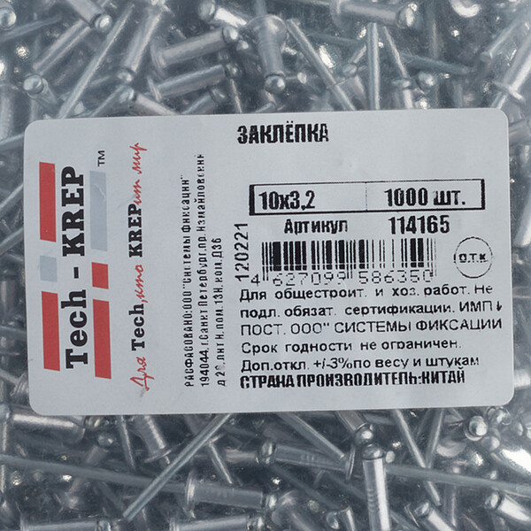 Предназначены для получения надежного неразъемного соединения различных материалов толщиной от 4,9 до 6,9 мм. Вытяжные заклепки удобны тем, что для их установки необходим доступ к скрепляемым поверхностям лишь с одной стороны.