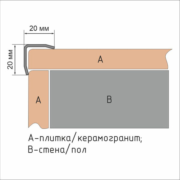 Профиль для плитки из нержавеющей стали марки AISI430 – надежно защищает край керамической плитки от разрушения, истирания и деформации, предавая ей законченный эстетический вид.
