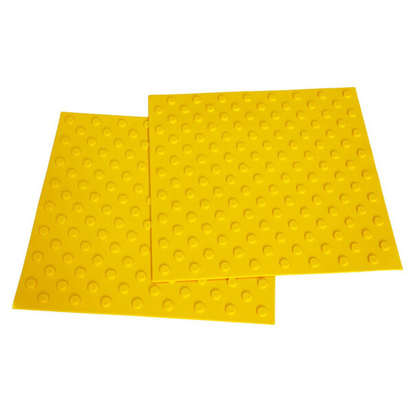 Тактильная плитка выполнена в соответствии с ГОСТ Р 52875-2018, изготовлена из высококачественного полиуретана или ПВХ, твёрдостью не более 85 единиц по Шору по таблице А. Материал является высокопрочным и невосприимчивым к перепадам температур, обладает относительными грязеотталкивающими свойствами, поэтому плитка отлично подходит для укладки как внутри, так и снаружи помещений. Тактильная плитка информирует человека с нарушениями зрения о непреодолимом препятствии на пути следования (мебель, колонна и др.). Для обеспечения контраста с подстилающей поверхностью, а также для обеспечения оптимальных условий восприятия цвета слабовидящим человеком, тактильная плитка имеет яркий цвет поверхности (из коллекции RAL). Плитка предназначена для монтажа при помощи клея уже на имеющиеся напольное покрытие