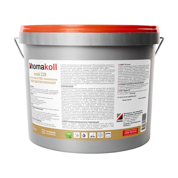 Предназначен для приклеивания бытового линолеума из ПВХ на вспененной, ворсовой или тканой подоснове к основаниям, впитывающим воду (бетон, цементная стяжка, дерево, ДСП, ДВП), на сырой клеевой слой.