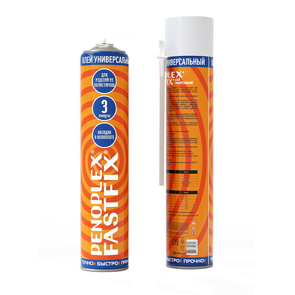 Penoplex Fastfix – однокомпонентный всесезонный полиуретановый клей-пена. Имеет низкое вторичное расширение и высокую адгезию к большинству строительных материалов, за исключением полиэтилена, полипропилена и тефлона. Рекомендуется для приклеивания гипсокартона, OSB-плит, металлочерепицы, легких декоративных элементов, сборки деревянных конструкций и кладки ячеистых блоков в несущих перегородках. Может использоваться для крепления теплоизоляционных плит из пенополистирола (EPS, XPS), пенополиуретана (PUR, PIR). Для бетонных, кирпичных, каменных, металлических оштукатуренных, битумных, деревянных оснований. Крепление в кровельных, наружных и внутренних система теплоизоляции, а также уплотнения стыков между плитами. Идеально подходит для сборки деревянных конструкций и кладки ячеистых блоков в несущих перегородках. Выход клея – до 5...