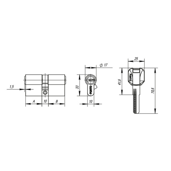 Цилиндр Punto предназначен для установки в корпуса врезных цилиндровых замков для всех типов дверей. Вариант исполнения – ключ-ключ. Тип ключа – перфорированный. Материал ключа – латунь с пластиковой эргономичной головкой. Материал ротора – латунь. Количество пинов 7. Секретность – более 78 000 комбинаций. Работоспособность – более 200 000 циклов открывания/закрывания. Гарантия 1 год.