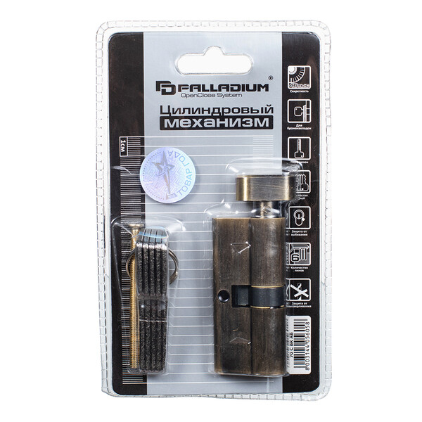 Цилиндровый механизм серии Smart C из латуни с высоким уровнем защиты и перфорированным ключом. Секретность 46000 комбинаций, защита от высверливания, выбивания. Подходит для установки с броненакладками.