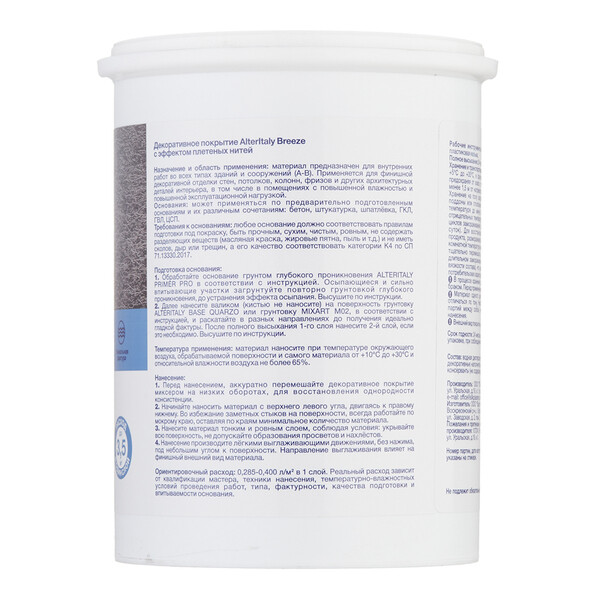 Тонкослойное декоративное покрытие AlterItaly BREEZE. BREEZE В05 – это не пугающий черный, а очаровывающий своей глубиной и самодостаточностью графитовый оттенок с мягким перламутровым сиянием поверхности. Применяется в жилых и коммерческих помещениях.
