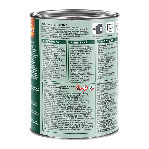| Расход | Пиленая поверхность - 8 м2/л, Строганая поверхность - 10 м2/л |