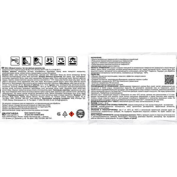 Предназначен для защиты минеральных поверхностей от атмосферных воздействий, для повышения морозостойкости оснований, защиты от появления и распространения микротрещин, предотвращения появления высолов, декоративной отделки. Подходит для внешней облицовки печей и каминов. Применяется внутри и снаружи помещений по любым минеральным основаниям (природный и искусственный камень, кирпич, бетон, цемент, штукатурка, черепица, гипсовый декоративный камень и пр.), кроме полов и крыш. При высокой вероятности образования биопоражений на поверхности, рекомендуется предварительная обработка составом Dali Универсальный антисептик.