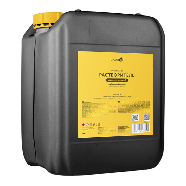 Растворитель на основе ароматических углеводородов. Растворитель Elcon R предназначен для обезжиривания подготовленных под окраску металлических поверхностей, а также для разбавления до рабочей вязкости кремнийорганических, эпоксидных, виниловых, акриловых и других лакокрасочных покрытий.