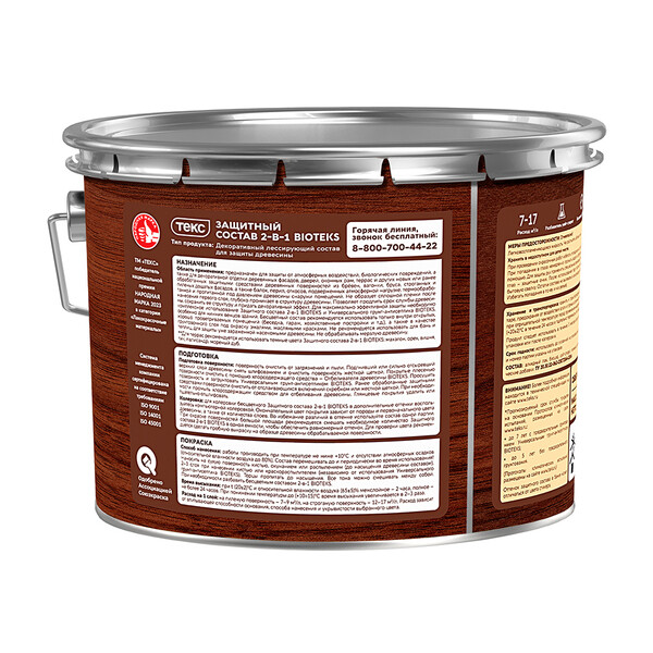 Декоративный лессирующий состав для защиты древесины. Предназначен для защиты от атмосферных воздействий, биологических повреждений, а также для декоративной отделки деревянных фасадов, дверей, оконных рам, террас (в т.ч. полов) и других новых или ранее обработанных защитными средствами деревянных строительных конструкций снаружи помещений. Не образует сплошной пленки после нанесения первого слоя, глубоко проникает в структуру древесины. Позволяет продлить срок службы древесины, сохранить ее структуру и придать декоративный эффект. Для максимально эффективной защиты необходимо комплексное использование Защитного состава 2 в 1 Bioteks и Универсального грунт-антисептика Bioteks, особенно для нижних венцов зданий. Бесцветный состав рекомендуется использовать только внутри открытых, хорошо проветриваемых помещений (беседка, гараж, хозяйствен...