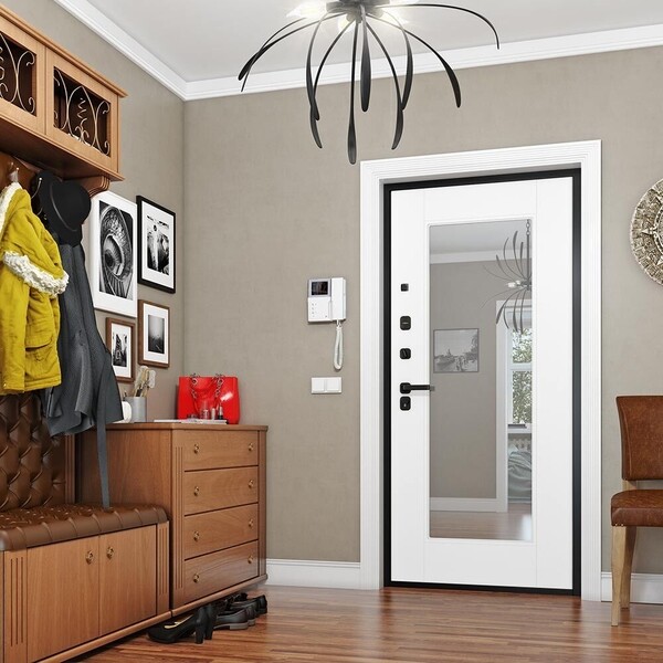 Входная дверь DoorHan Премиум предназначена для покупателей, которые ценят не только технические характеристики, но и привлекательный современный дизайн. Отличительная особенность – дверь полностью изготовлена из холоднокатаной оцинкованной стали толщиной 0,8 мм с использованием технологии бесшовного производства с 2-мя листами металла. В качестве наполнения используется огнестойкая минераловатная плита высокой плотности 130 кг/м?, заполнение полотна беспустотное. Снаружи МДФ панель в цвете Серый Графит с фрезеровкой «Классика», изнутри МДФ панель в белом цвете с зеркалом.