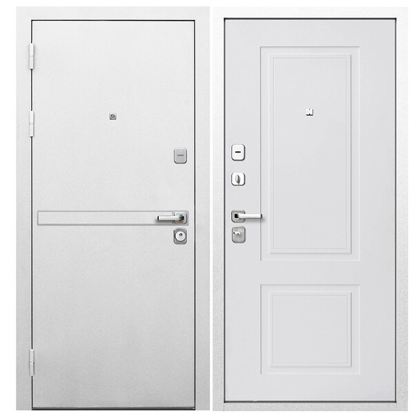 Дверь входная 9 см Металл/МДФ Белая Шагрень Эмалит белый 960 мм левая предназначена для установки в жилых и общественных зданиях в качестве входной двери внутри помещения. Полотно изготовлено из стали. Стальной лист 1 мм с атмосферостойким порошковым покрытием цвета «Белая шагрень», с зеркальной вставкой из нержавеющей стали. С внутренней стороны облицовано фрезерованной МДФ-панелью толщиной 10 мм, цвет "Эмалит белый". Анкерные болты в комплект не входят и приобретаются отдельно. Диаметр отверстий под анкер – 25 мм. Длина анкера подбирается под тип стены.