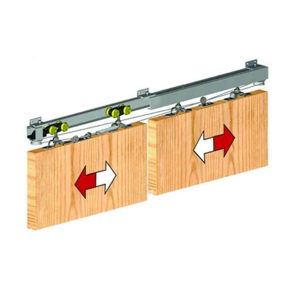 Механизм синхронного открывания позволяет синхронизировать работу двух раздвижных дверей Herkules, установленных на одной направляющей, одновременно их открывая и закрывая. Тросовый механизм изготовлен из стали. Не требует сложного монтажа, допускается установка на массивные дверные полотна. Совместим с системой Herkules (код Петрович 961963, 961962, 961964).