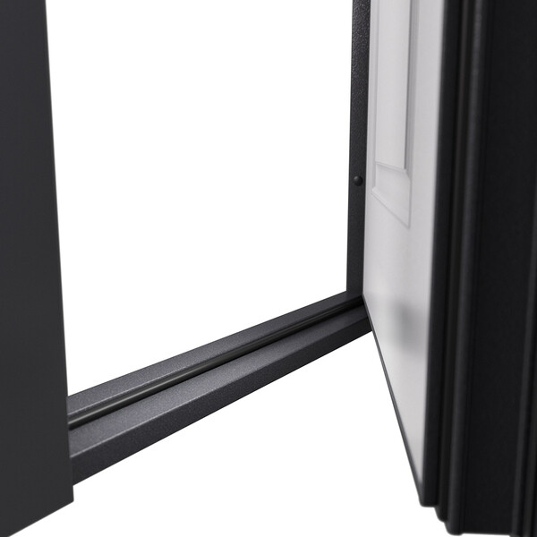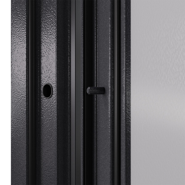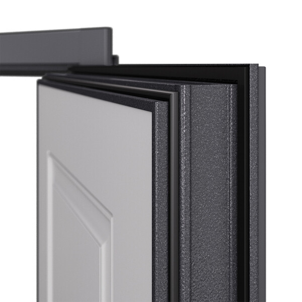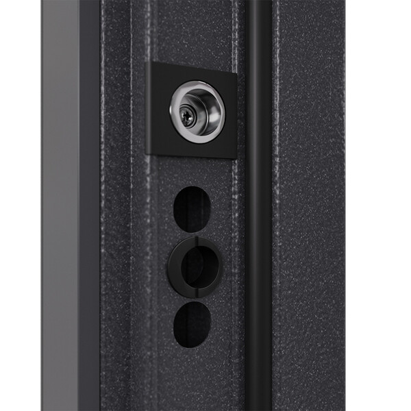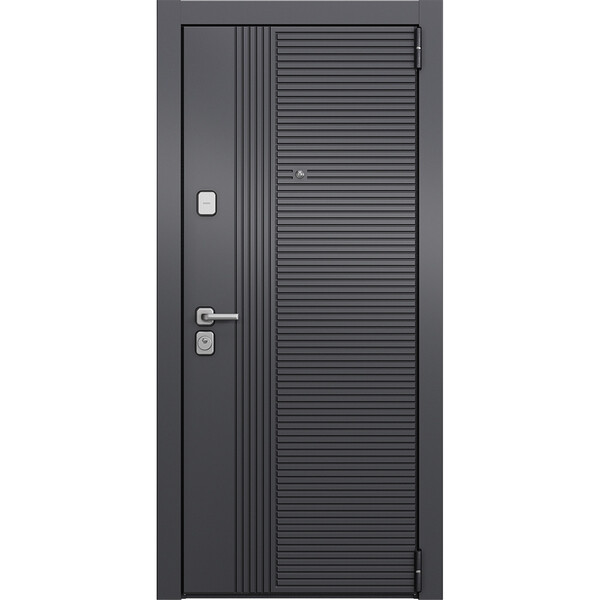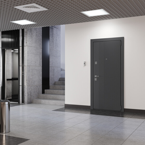 Предназначена для установки в жилых и общественных зданиях в качестве входной двери внутри помещения. Полотно изготовлено из стали. Стальной лист 1,4 мм с атмосферостойким порошковым покрытием цвета "Темно-серый букле графит"; с внешней отделкой МДФ в цвете "Оскуро" с декоративной отделкой; с внутренней стороны МДФ в цвете "Бьянко". Наполнение – минеральная плита + пенополистирол.