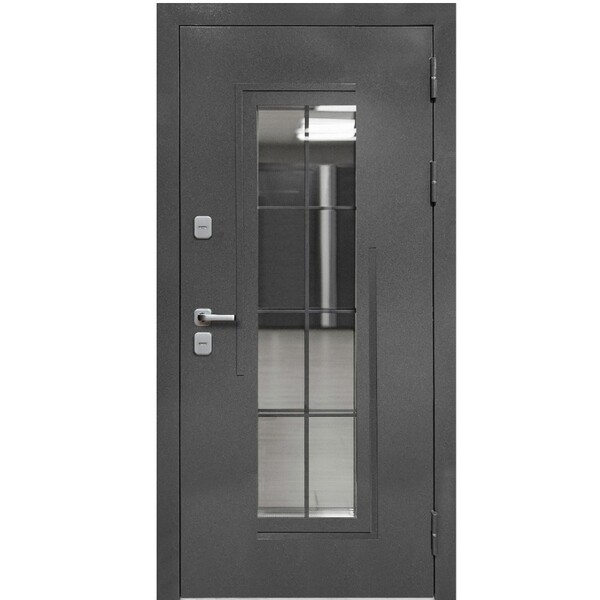 Предназначена для установки в качестве уличной входной двери в частных домах, загородных коттеджах, таунхаусах, на границе улица/дом, в том числе в жилых и общественных зданиях. Для дверей, имеющих контакт с улицей, обязательно наличие козырька, защищающего от прямых воздействий осадков и солнечного света. Полотно изготовлено из стали. С внутренней стороны облицована фрезерованной МДФ-панель 10 мм, цвет пленки «Эмалит белый». Стеклопакет – 3 камеры, 95 мм, тонированный, ковка внутри.