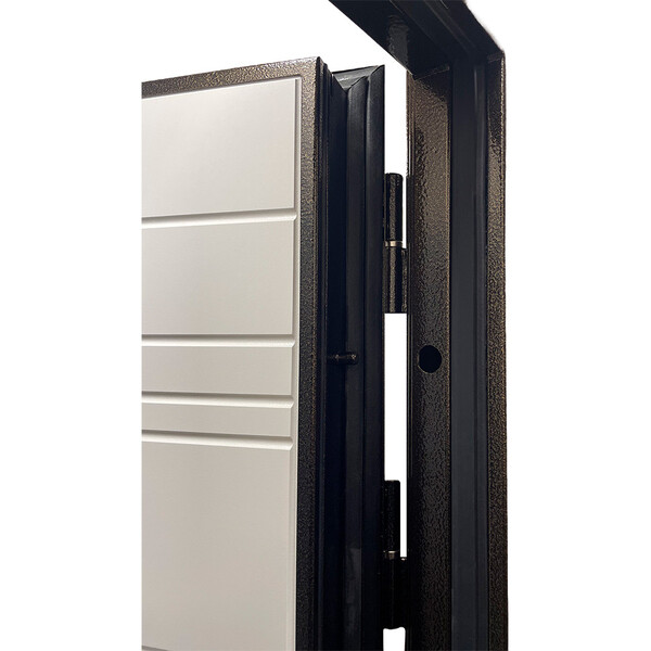 Предназначена для установки в качестве уличной входной двери в частных домах, загородных коттеджах, таунхаусах, на границе улица/дом, в том числе в жилых и общественных зданиях. Полотно изготовлено из стали. С внутренней стороны облицовано фрезерованной МДФ-панелью толщиной 10 мм. Стальной лист 1,2 мм с атмосферостойким порошковым покрытием цвета "антик медный"; панель МДФ, толщиной 10 мм в цвете "белый"; наполнение – базальтовая плита + пенополистирол. Полный терморазрыв как на полотне двери, так и на раме.
