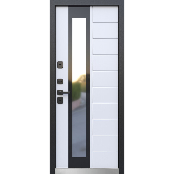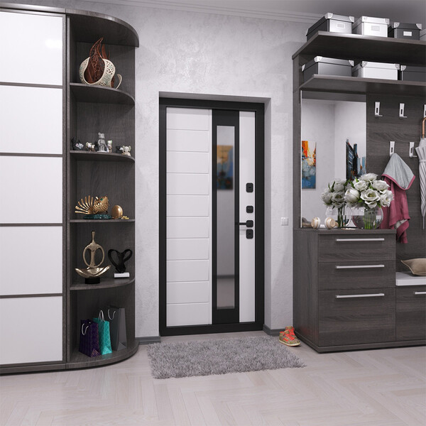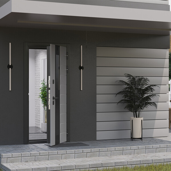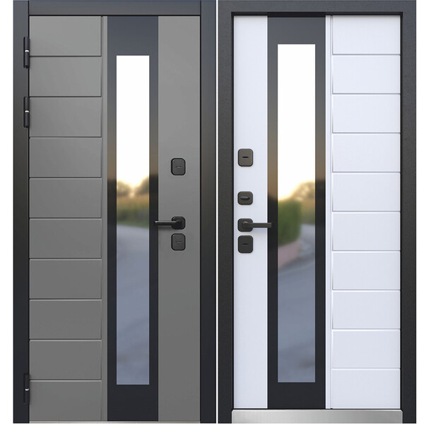 Дверь входная Ferroni Luxor Termo 5 860 мм левая предназначена для установки в качестве уличной входной двери в домах, коттеджах, таунхаусах. Полотно изготовлено из стали. С внешней стороны облицовано фрезерованной МДФ-панелью толщиной 12 мм, цвет "Эмаль серая". С внутренней стороны облицовано фрезерованной МДФ-панелью толщиной 10 мм, цвет "Эмалит белый". Анкерные болты в комплект не входят и приобретаются отдельно. Диаметр отверстий под анкер – 25 мм. Длина анкера подбирается под тип стены.