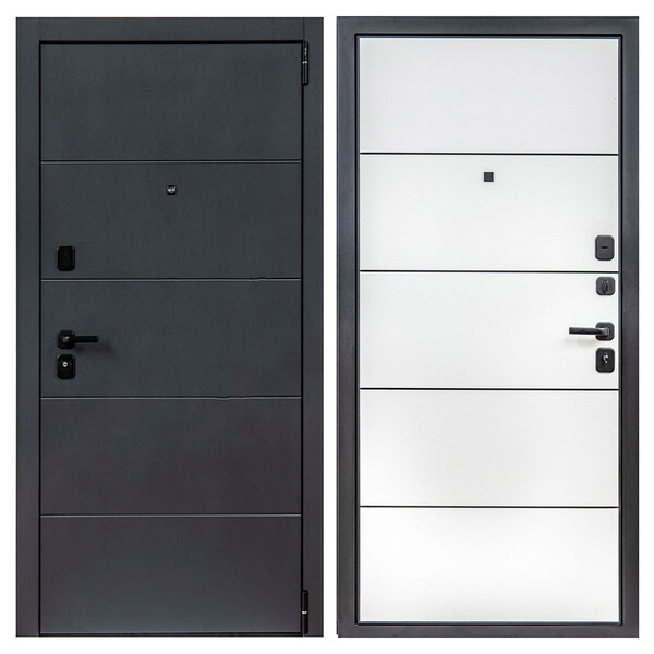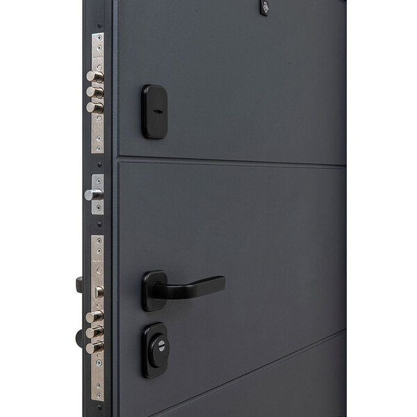 Дверной стальной однопольный блок с открыванием наружу. Дверь предназначена для установки в жилых и общественных зданиях в качестве входной двери внутри помещения. Цельногнутая конструкция полотна и закрытый цельнокатаный профиль коробки. Стальной лист с атмосферостойким порошковым покрытием цвет "Лунный камень" декорированный панелью МДФ 10 мм. С внутренней стороны облицовано царговой МДФ-панелью толщиной 22 мм, цвет "Snow Veralinga". Три горизонтальных усиливающих омега-профиля (ребра) создают единую монолитную жесткость и прочность конструкции. Две наружные петли на опорных подшипниках. Два замка 4-го (высшего) класса взломостойкости. Цилиндровый механизм с вариантом исполнения «ключ-шток», взаимозаменяемый аналогичным вариантом. Встроенные в дверную коробку 3 гильзы из ABS-пластика обеспечивают тихую работу ригелей. Дверь крепится ан...