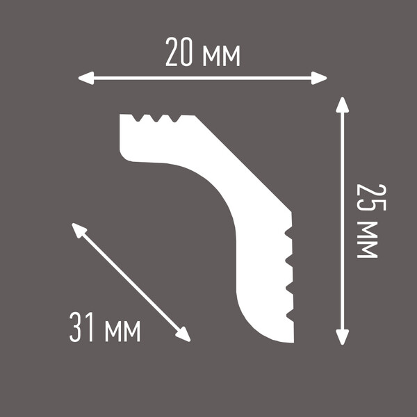 Предназначен для внутренней декоративной отделки жилых помещений. Классическая модель плинтуса имеет высокую плотность, гладкую матовую поверхность. Оптимальная плотность потолочного плинтуса обеспечивает однородность структуры, а незначительный вес создает дополнительные удобства при монтаже. Не требует обязательной окраски. Крепится к стене и потолку при помощи шпаклевки или жидких гвоздей.