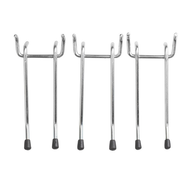 Крючок для перфорированных панелей с расстоянием между отверстиями 25 мм. Используется в мастерских, гаражах, на производстве в качестве подвеса для систем хранения инструментов, а также для органайзеров в зонах рукоделия и творчества, для компактного настенного размещения канцтоваров у письменного стола, на кухне для хранения на перфопанелях мелкой кухонной утвари. Тип крючка – двойной. Полезная длина 100 мм. Материал – сталь с оцинкованным покрытием. В комплекте 3 штуки.