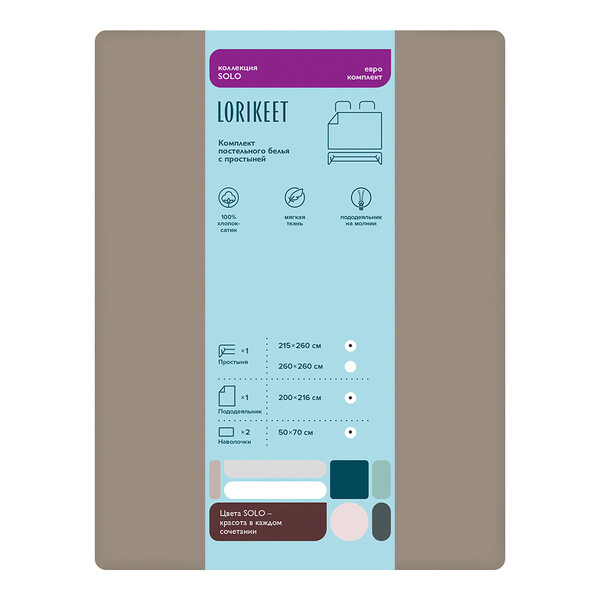 Комплект постельного белья Евро сатин Lorikeet Solo латте с простыней 215х260 см