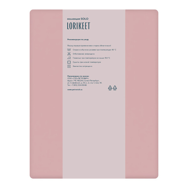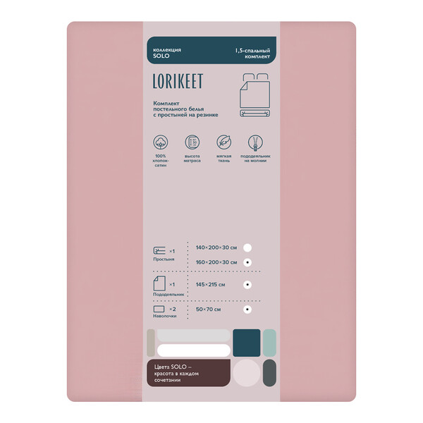 Комплект постельного белья 1,5-спальный сатин Lorikeet Solo пудровый с простыней на резинке 160х200х