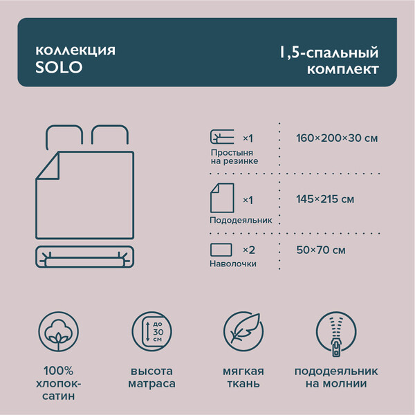 Комплект постельного белья из коллекции Solo выполнен из высококачественного хлопкового сатина.