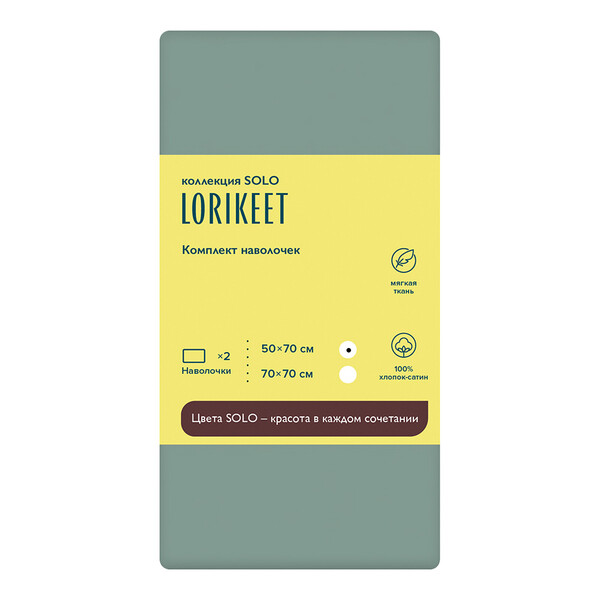 Наволочка 50х70 сатин шалфей Lorikeet Solo (2 шт.)