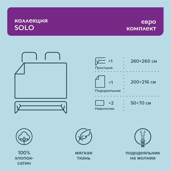 Комплект постельного белья из коллекции Solo выполнен из высококачественного хлопкового сатина.