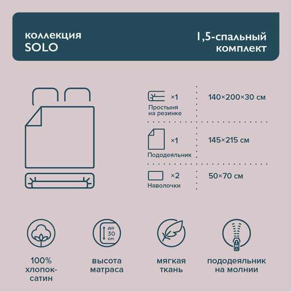 | Количество пододеяльникoв в комплекте, шт | 1 |