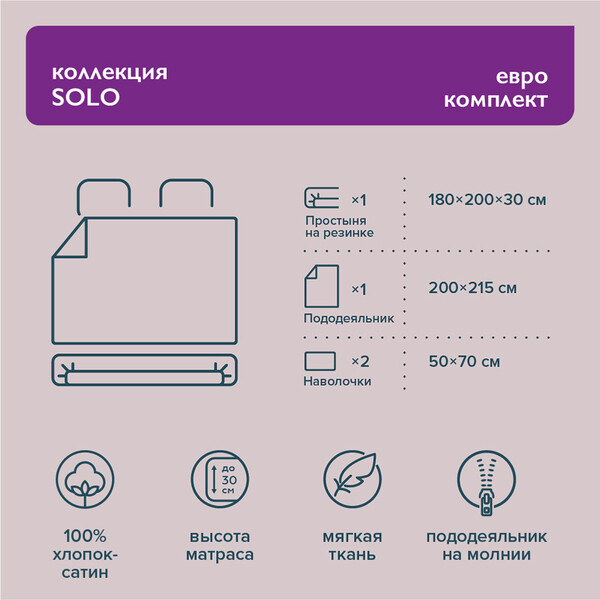 Комплект постельного белья из коллекции Solo выполнен из высококачественного хлопкового сатина.