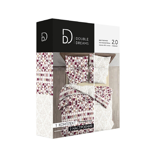 Предназначен для комфортного сна. Менять себя и все вокруг, намного проще и интереснее, чем вы думали и это еще никогда не было так просто. Комплекты постельного белья “Double Dreams” – это уникальное решение, которое позволяет всего за пару секунд преобразить вашу спальню. Вам достаточно просто перевернуть подушки и одеяло, и интерьер полностью поменяется, один комплект – два настроения. Уникальность универсальности решения, когда покупая один комплект, получаешь два разных по стилю и настроению комплекта постельного белья. Каждая сторона комплектов “Double Dreams” – особое настроение. Романтика или умиротворение, страсть или нежность, спокойствие или волнительное ожидание. Выбирайте, какой будет ваша спальня сегодня вечером. Коллекция постельного белья “Double Dreams” произведена на ткани перкаль – плотная, тонкая, гладкая и приятная ...