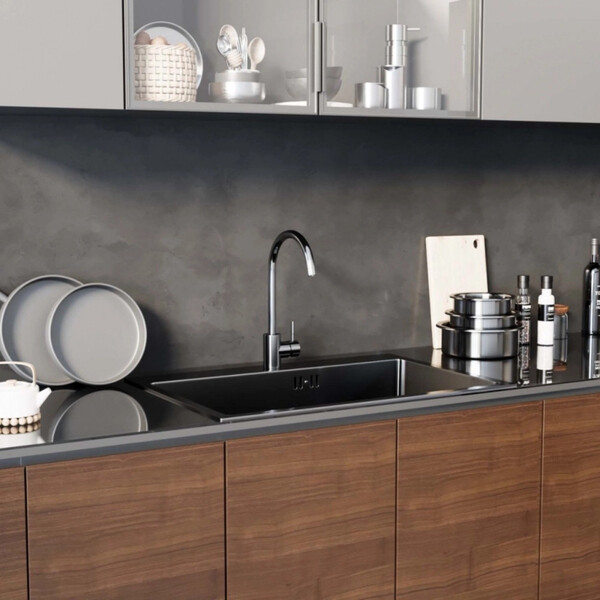 Смеситель из нержавеющей стали – модный акцент современного интерьера на кухне, отличающийся надежностью и прочностью. Имеет рычажное управление и поворотный излив. Присоединительный размер подводки 1/2 дюйма, водозапорный механизм – керамический картридж 35 мм. Гарантия 4 года.