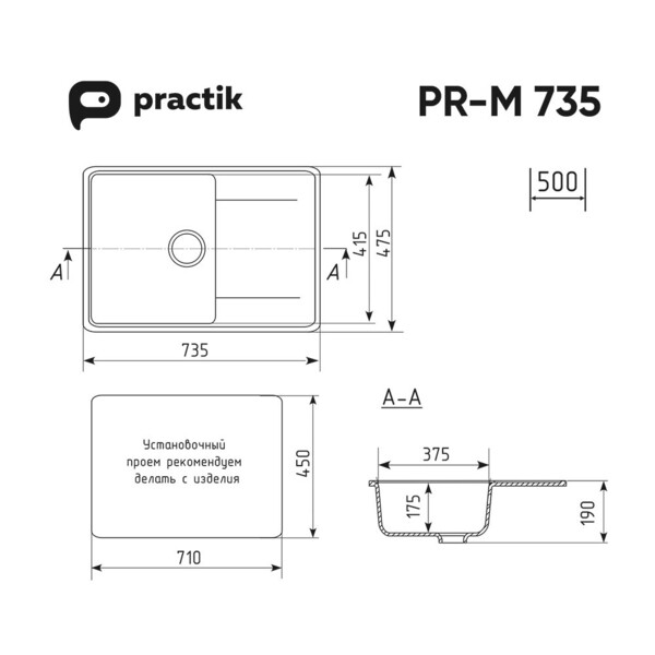 Односекционная реверсивная мойка Practik PR-735 с плоским крылом является оборачиваемой – крыло может располагаться как справа, так и слева. Материал мойки представляет из себя искусственный камень, который является композитом на основе натурального мрамора и связующих смол. Искусственный камень существенно снижает уровень шума при падении струи воды. Специальное покрытие гелькоут защищает поверхность мойки от загрязнений и бытовых царапин, делая уход за мойкой легким и простым. Данная мойка имеет устанавливается в шкаф от 50 см и дает возможность осуществить монтаж мойки в стандартную столешницу шириной 60 см, а также открывает широкий спектр возможностей при проектировании кухни. Заводская гарантия составляет 1 год, а срок службы данной мойки, при соблюдении основных правил ухода за ней, составляет более 10 лет.