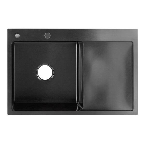 Сделана из нержавеющей стали. Не окисляется при контакте с водой, имеет идеальную гладкую поверхность. Проста в уходе – достаточно мягкого чистящего средства и губки. Не терпит абразивов. Вся грязь удаляется быстро и без проблем, а раковина будет сиять как новая. Мойка в цвете графит от бренда РМС имеет специальное покрытие PVD. Краска данной мойки интегрирована в металл, что позволяет ей быть устойчивой к образованию мелких царапин при неосторожном внешнем воздействии. По периметру мойки дополнительно нанесена шумоизоляция, что позволяет значительно снизить звук от потока воды. Функционал модели с плоским крылом добавит удобства в ее использовании.