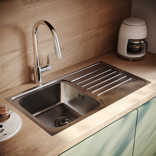 Стальную мойку Sound с шелковой текстурой отличают функциональность и актуальный дизайн, который подойдет практически к любой современной кухне. Крыло мойки удобно использовать для сушки столовых приборов. Устанавливается сверху в столешницу. Мойка оборачиваемая – крыло можно повернуть налево или направо – выбирайте, как вам удобно. Изготовлена из качественной нержавеющей стали 304, которая не боится ни бытовой химии, ни царапин. Имеет текстуру с эффектом шелковой поверхности благодаря специальной обработке стали. Это придает мойке современный технологичный вид. Прослужит дольше за счет увеличенной толщины стального листа, что обеспечивает ее надежность, ударопрочность и износостойкость. Специальное антишумовое покрытие и полимерные накладки на оборотной стороне чаши снижают шум при использовании мойки. Сифон приобретается отдельно. ...
