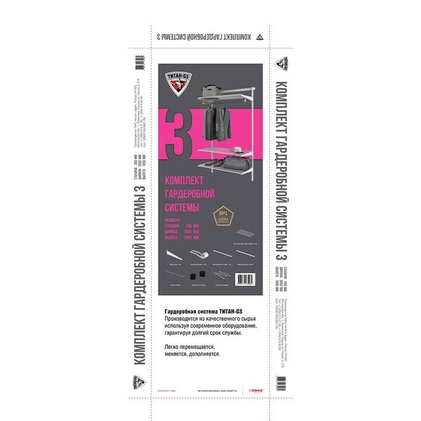 Гардеробная система металлическая белая 2050х1000х350 мм Титан-GS