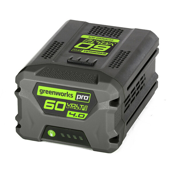 Аккумулятор G60B4 Greenworks – это литий-ионная (Li-ion) батарея последнего поколения. 2000 циклов заряда-разряда гарантируют долгий срок службы. Особенностью Li-ion батареи является отсутствие "эффекта памяти". Батарея снабжена индикатором уровня заряда и ударопрочным корпусом для защиты от механических повреждений. Прорезиненная накладка на корпусе для удобного захвата аккумулятора при его замене.