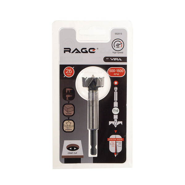 Предназначено для сверления круглых отверстий в деревянных и пластиковых поверхностях. Изготовлено из высококачественной стали Т10 твердостью 48-58 HRC. Шестигранный наконечник позволяет работать не только с дрелью, но и с шуруповертом. Центрирование сверла откалибровано с точностью до 0,25 мм.