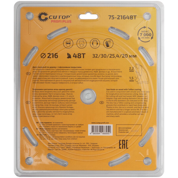 Предназначен для распила мягких и твердых пород древесины, МДФ, фанеры и др. В комплекте поставляются переходные кольца с посадочными диаметрами (4, 20, 25, 30, 32 мм). Диск имеет тефлоновое покрытие и компенсационные пазы, которые способствуют быстрому теплоотводу. Благодаря этому рез получается ровный, а диск не деформируется и имеет более длительный срок службы. Изготавливаются диски в специальной автоматической индукционной машине, которая обеспечивает более гладкую поверхность и острые зубья. Используется совместно с циркулярными и торцовочными пилами для продольного и поперечного реза.
