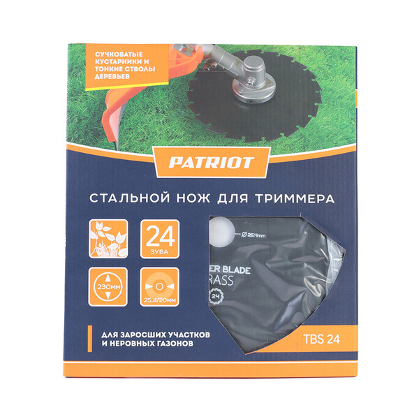 Нож для триммеров Patriot TBS-24 предназначен для среза мелких кустарников, молодой поросли деревьев и крупных сорняков. Форма зубьев обеспечивает плавный рез и защищает диск от застревания в древесине. Оснастка имеет высокую производительность и длительный срок службы.