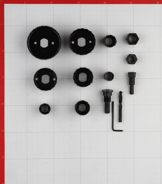 Предназначены для сверления отверстий в таких материалах, как дерево, гипсокартон, ДСП, ламинат, а также для изготовления проходов для трубопроводов, сквозных отверстий под выключатели и разветвительные коробки и др. при помощи дрели. Диаметр коронок – 19, 22, 25, 29, 38, 44, 51, 64 мм.