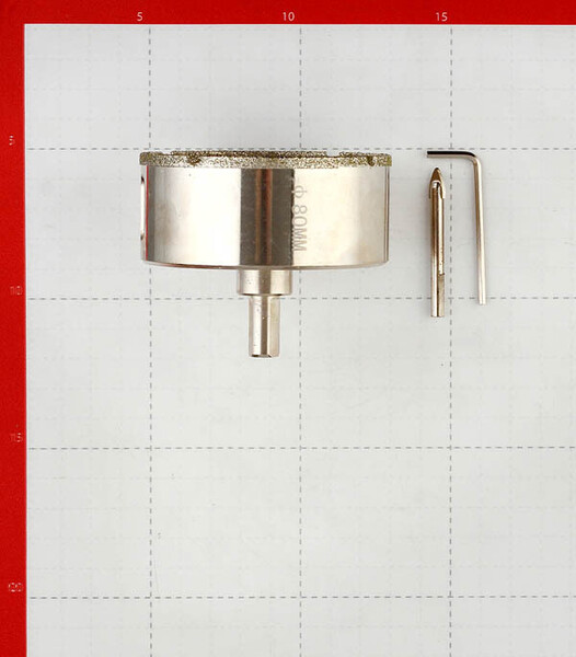 Предназначена для сверления отверстий в керамической, керамогранитной и кафельной плитке при обязательном водяном охлаждении. Равномерное распределение зерна на поверхности рабочей части обеспечивает аккуратное сверление материала без трещин и сколов. В комплект входит центрирующее сверло, которое исключает возможность смещения инструмента во время работы. Материал абразива – синтетические алмазы, зерно 60